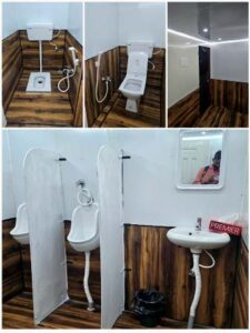 ପୁରୁଷଙ୍କ ପାଇଁ – କମୋଟ ୧ ଗୋଟି, ଇଣ୍ଡିଆନ ପାଇଖାନା ୧ ଗୋଟି , ପରିଶ୍ରାଗାର ୨ ଗୋଟି