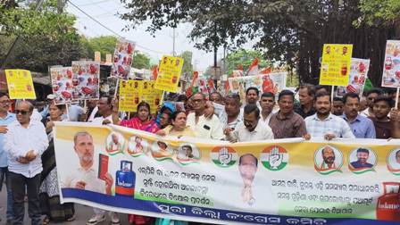 ଗ୍ଯାସ ନମିଳିବା ଓ ସାମଗ୍ରୀର ଦରବୃଦ୍ଧିକୁ ନେଇ କଂଗ୍ରେସର ବିକ୍ଷୋଭ