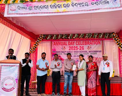 କଣ୍ଟାବାଞ୍ଜି (ଓଡ଼ିଶା ତାଜା ନ୍ୟୂଜ୍) (ନିପ୍ର) :- ସ୍ଥାନୀୟ ପିଏମ୍ ଶ୍ରୀ ସରକାରୀ ବାଳିକା ଉଚ୍ଚ ବିଦ୍ୟାଳୟ, କଣ୍ଟାବାଞ୍ଜିଠାରେ ୨୦୨୫-୨୬ ଶିକ୍ଷାବର୍ଷର ବାର୍ଷିକ ଉତ୍ସବ ମହାସମାରୋହରେ ପାଳିତ ହୋଇଯାଇଛି । ବିଦ୍ୟାଳୟର ପ୍ରଧାନ ଶିକ୍ଷୟତ୍ରୀଙ୍କ ତତ୍ତ୍ୱାବଧାନରେ ଆୟୋଜିତ ଏହି କାର୍ଯ୍ୟକ୍ରମରେ ଶ୍ରୀ ଅଶୋକ କୁମାର ତରିଆ ସଭାପତିତ୍ୱ କରିଥିଲେ । ଏହି ଉତ୍ସବରେ ମୁଖ୍ୟ ଅତିଥି ଭାବେ ତୁରେକେଲା ଗୋଷ୍ଠୀ ଶିକ୍ଷା ଅଧିକାରୀ ଶ୍ରୀ ଗୌତମ ପଟେଲ ଯୋଗଦେଇ ଛାତ୍ରୀମାନଙ୍କୁ ଉତ୍ସାହିତ କରିଥିଲେ। ମୁଖ୍ୟ ବକ୍ତା ଭାବେ ବେଲପଡ଼ା ପି.ଏସ୍ ଡିଗ୍ରୀ କଲେଜର ଇତିହାସ ଅଧ୍ୟାପକ ଶ୍ରୀ ସୁଦାମ ମହାପାତ୍ର ଯୋଗଦେଇ ଶିକ୍ଷା ଓ ସଂସ୍କୃତିର ମହତ୍ତ୍ୱ ଉପରେ ଆଲୋକପାତ କରିଥିଲେ।