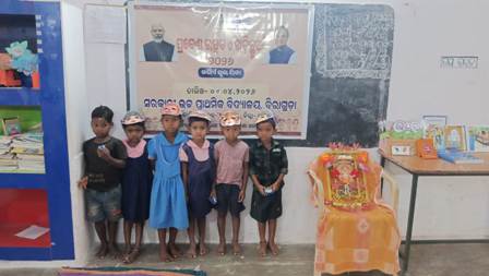 ନୂତନ ଭାବରେ ବିଦ୍ୟାଳୟକୁ ଖଡ଼ି ଛୁଆଁ ପାଇଁ ଆସିଥିବା ଶିଶୁ ଓ ଅଭିଭାବକ ମାନଙ୍କୁ ପ୍ରଧାନ ଶିକ୍ଷକ ଅଲେଖ ରଣା ଫୁଲ ଚ଼ନ୍ଦନ ଦେଇ ସ୍ୱାଗତ କରିବା ପରେ ଶିଶୁ ବାଟିକାରେ ନାମ ଲେଖିବା ପାଇଁ ଆସିଥିବା ଶିଶୁମାନଙ୍କୁ ପ୍ରଧାନ ଶିକ୍ଷକ ଶ୍ରୀ ରଣା ଖଡ଼ି ଛୁଆଁଇଥିଲେ । ଏହି ଅବସରରେ ପ୍ରସ୍ତୁତ ହୋଇଥିବା ଖେଳଘର,