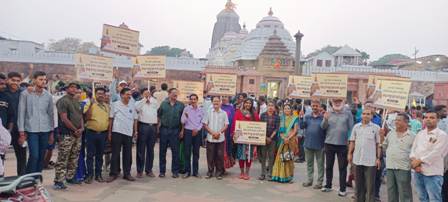 ପୁରୀ (ଓଡ଼ିଶା ତାଜା ନ୍ୟୂଜ୍) (ନିପ୍ର ) :- ପୁରୀ ସହର ଓ ସଦରବାସୀଙ୍କ ପୂର୍ବପରି ଶ୍ରୀମନ୍ଦିର ପ୍ରବେଶ ଓ ଦର୍ଶନ ଅଧିକାର ପାଇଁ ସଚେତନତା ପଦଯାତ୍ରାର ଦଶମ ଦିନରେ ପହଞ୍ଚିଛି l ଏହା ଅଧିକ ଭାବନାପୂର୍ଣ୍ଣ ଓ ଏକତାମୟ ଚିତ୍ର ପ୍ରଦର୍ଶନ କରିଥିଲା । ପୁରୀ ସହର ଓ ସଦରବାସୀଙ୍କ ଆସ୍ଥା ଓ ଅଧିକାରର ସ୍ୱରକୁ ନେଇ ଚାଲିଥିବା ସଚେତନତା ପଦଯାତ୍ରା ଦଶମ ଦିନରେ ବଳଗଣ୍ଡି ସ୍ଥିତ ଭକ୍ତ ସାଲବେଗ ପୀଠରୁ ଆରମ୍ଭ ହୋଇଥିବା ଏହି ପଦଯାତ୍ରା ଶ୍ରୀମନ୍ଦିର ପରିସର ନିକଟରେ ସମାପ୍ତ ହୋଇଥିଲା ।