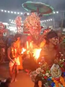 ଅଗ୍ନିଦଣ୍ଡ କୁ ଖେଳାଇ ଦଣ୍ଡୁଆ ମାନେ ମାନସିକ ଧାରୀଙ୍କ ବାସ ଭବନକୁ ଗମନ କରି ସେଠାରେ ପୁଜା ଗ୍ରହଣ କରି ଆଶୀର୍ବାଦ ପ୍ରଦାନ କରିଥିଲେ। ରାତ୍ର ସମୟରେ ପୁଣି ମାନସିକ ଧାରୀଙ୍କ ବାସ ଭବନ ସମ୍ମୁଖରେ ପାରମ୍ପରିକ ମା’ କାଳୀଙ୍କ ପରଭା ନୃତ୍ଯ ପରିବେଷଣ ହେଲା ପରେ ପାରମ୍ପରିକ ନୃତ୍ୟ ଗୀତ ଅନୁଷ୍ଠିତ ହେଉଛି ।