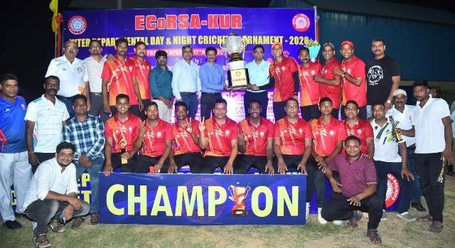 ଖୋରଧା-ଜଟଣୀ (ଓଡ଼ିଶା ତାଜା ନ୍ୟୂଜ୍) (ନିପ୍ର ) :- ପୂର୍ବତଟ ରେଳବାଇ କ୍ରୀଡ଼ା ସଂଘ ଖୋର୍ଦ୍ଧାରୋଡ ଦ୍ୱାରା ଆୟୋଜିତ ଆନ୍ତଃ ବିଭାଗୀୟ ଦିବା,ରାତ୍ର କ୍ରିକେଟ୍ ପ୍ରତିଯୋଗିତା ୨୦୨୬ ସଫଳତାର ସହ ଶେଷ ହୋଇଛି। ଫାଇନାଲ୍ ମ୍ୟାଚ୍ ସୁରକ୍ଷା(ଆର୍.ପି.ଏଫ୍)ଏବଂ ପରିଚାଳନା ବିଭାଗ ମଧ୍ୟରେ ଖେଳାଯାଇଥିଲା । ଯେଉଁଥିରେ ସୁରକ୍ଷା(ଆର୍.ପି.ଏଫ୍)୩ଟି ୱିକେଟ୍ ବ୍ୟବଧାନରେ ବିଜୟୀ ହୋଇ ଚାମ୍ପିଅନ୍ ହୋଇଛି । ଏହି ପ୍ରତିଯୋଗିତା ୦୨.୦୪.୨୦୨୬ ତାରିଖରେ ଖୋର୍ଦ୍ଧାରୋଡ୍ ରେଳବାଇ ଷ୍ଟାଡିୟମରେ ଉଦଘାଟିତ ହୋଇଥିଲା ।