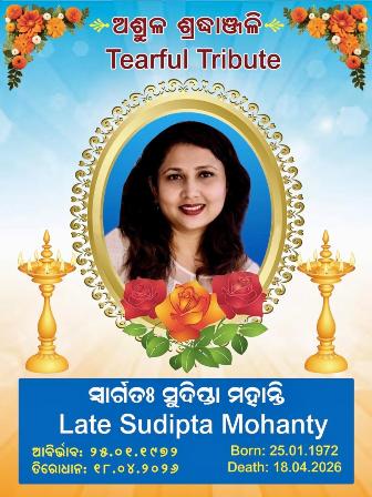 ନୋଏଡା (ଓଡ଼ିଶା ତାଜା ନ୍ୟୂଜ୍) (ନିପ୍ର ) :- ସୁଦିପ୍ତା ମହାନ୍ତିଙ୍କର ଅକାଳ ବିୟୋଗ ଯୋଗୁଁ ଦିଲ୍ଲୀ ଏବଂ ଜାତୀୟ ରାଜଧାନୀ କ୍ଷେତ୍ରର ଓଡ଼ିଆ ସମ୍ପ୍ରଦାୟଙ୍କ ମଧ୍ୟରେ ଗଭୀର ଶୋକ ଓ ଅଭୂତପୂର୍ବ ସମବେଦନା ପ୍ରକାଶ ପାଇଥିବା ଦେଖାଯାଇଛି । ଚଉବନ ବର୍ଷୀୟା ଶ୍ରୀମତୀ ମହାନ୍ତିଙ୍କର ଗତ ୧୮ ତାରିଖ ଶନିବାର ଦିନ ସକାଳ ୮ ଟା ୧୫ ମିନିଟରେ ନୋଏଡାର ଏକ ଘରୋଇ ଡ଼ାକ୍ତରଖାନାରେ ନିମୁନିଆ ଯୋଗୁଁ ନିଧନ ଘଟିଥିଲା । ନୋଏଡାଠାରେ ସେହିଦିନ ହିଁ ତାଙ୍କର ଶେଷକୃତ୍ୟ ସମ୍ପନ୍ନ କରାଯାଇଥିଲା ।