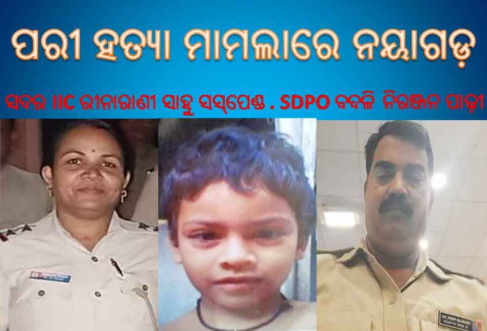 ଓଡ଼ିଶା ତାଜା ନ୍ୟୁଜ (୧୧ ଡିସେମ୍ବର ଶୁକ୍ରବାର) ନୟାଗଡ଼ :- ନୟାଗଡ଼ ସଦର ଥାନା ଆଇଆଇସି ରୀନାରାଣୀ ସାହୁ ସସ୍ପେଣ୍ଡ କରାଯାଇଥିବା ବେଳେ SDPO ନିରଞ୍ଜନ ପାଢ଼ୀଙ୍କୁ କନ୍ଧମାଳ DSP ଭାବେ ବଦଳି କରାଯାଇଛି ।