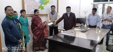 ଓଡ଼ିଶା ତାଜା ନ୍ୟୁଜ (୨୮ ଡିସେମ୍ବର ସୋମବାର ) ବରଗଡ଼ :- କରୋନା ଯୋଦ୍ଧା ସ୍ବର୍ଗତ ବିମ୍ବାଧର ଭୋଇଙ୍କ ପରିବାର ଙ୍କୁ ଜିଲ୍ଲା ପ୍ରଶାସନ ପକ୍ଷରୁ ପ୍ରଧାନମନ୍ତ୍ରୀ ଗରିବ କଲ୍ୟାଣ ଯୋଜନା ମାଧ୍ୟମରେ (ବୀମା) ୫୦ ଲକ୍ଷ ଟଙ୍କା ର ସହାୟତା ପ୍ରଦାନ କରାଯାଇଛି । ଆଜି ଅତିରିକ୍ତ ଜିଲ୍ଲାପାଳ ମିର୍ଦ୍ଧା ଟପ୍ପୋ ଙ୍କ କକ୍ଷ ଠାରେ ୫୦ ଲକ୍ଷ ଟଙ୍କାର ଚେକ୍ ତାଙ୍କ ପତ୍ନୀ ବେଲମତୀ ଭୋଇ ଙ୍କୁ ପ୍ରଦାନ କରିଥିଲେ । ସ୍ବର୍ଗତ ବିମ୍ବାଧର ବରଗଡ଼ ଜିଲ୍ଲା ବିଜେପୁର ଗ୍ରାମ ପଞ୍ଚାୟତ ର କର୍ଯ୍ୟ ନିର୍ବାହୀ ଅଧିକାରୀ ଭାବେ କାର୍ଯ୍ୟ କରୁଥିବା ସମୟରେ ଗତ କରୋନା ସ°କ୍ରମିତ ହୋଇ ମୃତ୍ୟୁ ହୋଇଥିଲା । ପରେ ଜିଲ୍ଲା ପ୍ରଶାସନ ପକ୍ଷରୁ ଜିଲ୍ଲା ତତ୍ପରତା ପ୍ରକାଶ କରାଯାଇ ସରକାରୀ ସହାୟତା ପ୍ରଦାନ କରିଥିଲେ । ଏହି ଅବସରରେ ଡିଆରଡିଏ ପ୍ରକଳ୍ପ ନିର୍ଦ୍ଦେଶକ କୃତିବାସ ରାଉତ ଏବଂ ତାଙ୍କ ପରିବାରର ସଦସ୍ୟ ମାନେ ଉପସ୍ଥିତ ଥିଲେ । (ରିପୋର୍ଟ – ସତ୍ୟ ନାରାୟଣ ପ୍ରଧାନ)