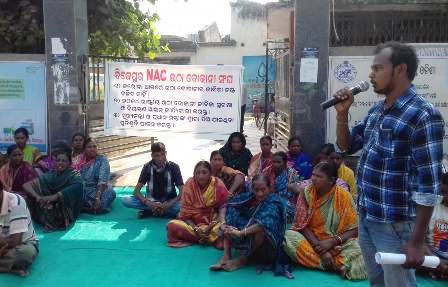 ଉଠା ଦୋକାନୀ ଙ୍କ ଥଇଥାନ ଦାବି ରେ ବିଜେପୁର ଏନଏସି ସାମ୍ନା ରେ ଧାରଣା