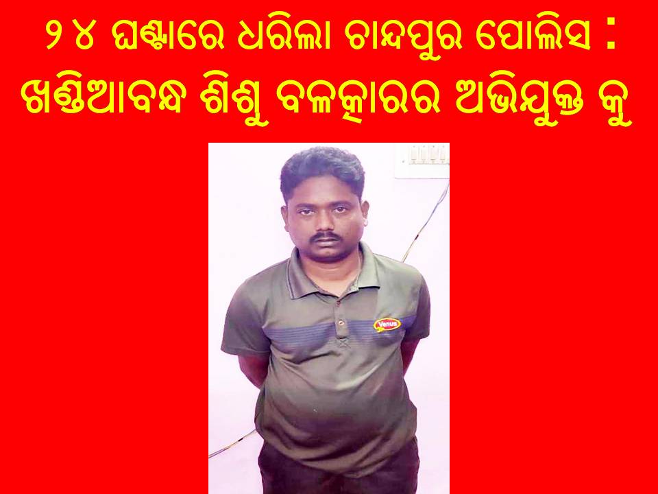 ଶିଶୁ ବଳତ୍କାର କେସ୍ ର ଅଭିଯୁକ୍ତ କୁ ଗିରଫ କରି, ମାମଲା ରୁଜ୍ଜୁ କରି କୋର୍ଟ ଚାଲାଣ କରିଛି – ଚାନ୍ଦପୁର ପୋଲିସ୍