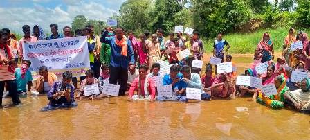 କତରଲଗା ଓ ଧୁମାଭଟା ଲାନ୍ଥ ନଦୀ ଉପରେ ବ୍ରିଜ ନିର୍ମାଣ ଦାବିରେ ଅଞ୍ଚଳ ବାସୀ ଜଳ ସତ୍ୟାଗ୍ରହ ।