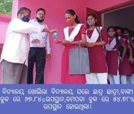 ବିଦ୍ୟାଳୟ ଖୋଲିଲା ବିଦ୍ୟାଳୟ ଗଲେ ଛାତ୍ର ଛାତ୍ରୀ,ବାଙ୍କୀ ବ୍ଲକ ରେ ୬୭.୮୪%ଉପସ୍ଥାନ,ଡମପଡା ବ୍ଳକ ରେ ୫୪.୭୮℅ ଉପସ୍ଥାନ ହୋଇଥିଲା
