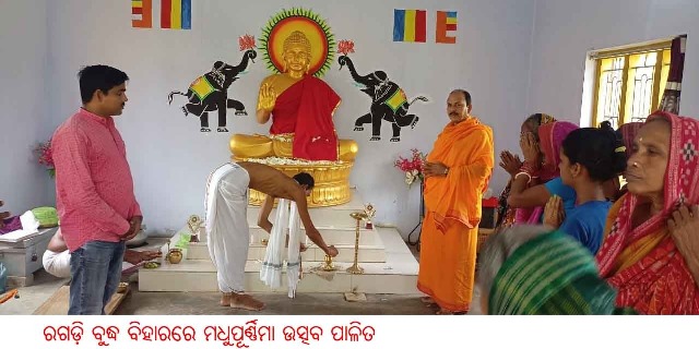 ଓଡ଼ିଶା ତାଜା ନ୍ୟୁଜ୍ (୨୦ ସେପ୍ଟେମ୍ବର ସୋମବାର ) ବାଙ୍କୀ :- ଡମପଡ଼ା ବ୍ଲକ ରଗଡ଼ି ବୁଦ୍ଧ ବିହାରରେ ଆଜି ମଧୁପୂର୍ଣ୍ଣିମା ଉତ୍ସବ ଅନୁଷ୍ଠିତ କୋଭିଡ କଟକଣାରେ ଅନୁଷ୍ଠିତ ହୋଇଯାଇଛି । କିମ୍ବଦନ୍ତୀ ଅନୁସାରେ ଏବଂ ବୌଦ୍ଧ ଶାସ୍ତ୍ର ଅନୁସାରେ ବର୍ଣ୍ଣିତ ଅଛି ଯେ ପାରିଏଲ୍ ବନରେ ପାରିଏଲ୍ ଦନ୍ତାହାତୀ ଭଗବାନ ବୁଦ୍ଧଙ୍କୁ ଆଜିର ଦିବସରେ ଫଳଭୋଗ ଦେଇଥିଲେ ଏବଂ ଜଙ୍ଗଲର ବାନରମାନେ ମହୁଫେଣାରୁ ମହୁ ସଂଗ୍ରହ କରି ଭଗବାନ ବୁଦ୍ଧଙ୍କୁ ଅର୍ପଣ କରିଥିଲେ । ଏହି ଦିନକୁ ମନେରଖିବା ପାଇଁ ପ୍ରତ୍ୟେକ ବୌଦ୍ଧ ମନ୍ଦିରରେ ଆଜିର ଦିବସରେ ମଧୁପୂର୍ଣ୍ଣିମା ପାଳନ କରାଯାଉଛି । ଆଜି ସକାଳୁ ରଗଡ଼ି ବୌଦ୍ଧ ମନ୍ଦିରରେ ପୂଜାର୍ଚ୍ଚନା କରାଯିବା ସହ ବିଶେଷ ରୀତିନୀତିରେ ଭଗବାନଙ୍କୁ ମହୁ ଅର୍ପଣ କରାଯାଇଥିଲା ।