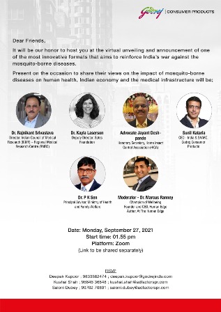  ସ୍ୱାସ୍ଥ୍ୟ ମନ୍ତ୍ରଣାଳୟ, ଆଇ୍‌ସିଏମ୍‌ଆର୍ ଓ ଏଚ୍‌ଆଇସିଏର ବିଶେଷଜ୍ଞଙ୍କ ମତରେ ଭାରତ ମଶା ଜନିତ ରୋଗ ମୁକ୍ତ ହେବାକୁ ଚାହୁଁଥିଲେ ନବସୃଜନ ଓ ସହଯୋଗିତା ଆବଶ୍ୟକ ଭାରତରେ ବିକଶିତ ନବସୃଜନ ଏକ କାଗଜ ଭିତିକ ମଶା ଘଉଡ଼ାଇବା ଉପାଦାନ ଯାହା ତୁରନ୍ତ ମଶା ମାରିବ ଏବଂ ଏହାର ପ୍ରଭାବ ୪ ଘଂଟା ପର୍ଯ୍ୟନ୍ତ ରହିବ, ଯାହା ଗୋଦରେଜ୍‌ କଂଜ୍ୟୁମର୍ ପ୍ରଡକ୍ଟସ୍ ଦ୍ୱାରା ବିକଶିତ