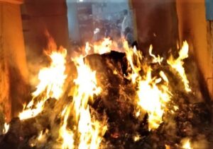 ଓଡ଼ିଶା ତାଜା ନ୍ୟୁଜ୍ (୨୦ ଏପ୍ରିଲ ବୁଧବାର ) କୋରା :- ସ୍ଥାନୀୟ ଲକ୍ଷ୍ମୀନଗର ପଂଚାୟତ ଅନ୍ତର୍ଗତ ତରାପୁର ଆଂଚଳିକ ହିଙ୍ଗୁଳା କମିଟି ପକ୍ଷରୁ ମା’ହିଙ୍ଗୁଳା ଦେବୀଙ୍କ ୮୬ତମ ଯଜ୍ଞତ୍ସବର ମଙ୍ଗଳବାର ପୂର୍ଣ୍ଣାହୁତୀ ହୋଇଛି । ଶୁକ୍ରମବାର ପୂର୍ବାହ୍ଣରେ ମନ୍ଦିରର ଧ୍ୱଜା ସ୍ଥାପନା କରାଯାଇଥିଲା ଅପରାହ୍ଣରେ ଯଜେ୍ଞାତ୍ସବର ଶୁଭାଧିବାସ ସ୍ୱରୂପ ଜଳକଳସ ଆଣି ବିଧିମତେ ସ୍ଥାପନା କରାଯାଇଥିଲା । ବୁଧବାର ପୂର୍ବାହ୍ଣରେ ମା’ଙ୍କ ଯଜ୍ଞସ୍ଥଳେ ଅଗ୍ନି ସଂଯୋଗ କରାଯାଇ ଯଜ୍ଞକାର୍ଯ୍ୟ ଆରମ୍ଭ କରାଯାଇଛି । କର୍ତାଭାବେ ନିରଞ୍ଜନ ପାଢୀ ପୂଜା କାର୍ଯ୍ୟସଂପାଦନ କରିଥିଲା ବେଳେ ମୁଖ୍ୟପୂଜକ ଶରତକୁମାର ପଣ୍ଡାଙ୍କ ସମେତ ଗୋପବନ୍ଧୁ ପାଢୀ(ଆଚାର୍ଯ୍ୟ), ଅଜୟକୁମାର ଶତପଥୀ, ଦିଲ୍ଲୀପକୁମାର ପଣ୍ଡା,