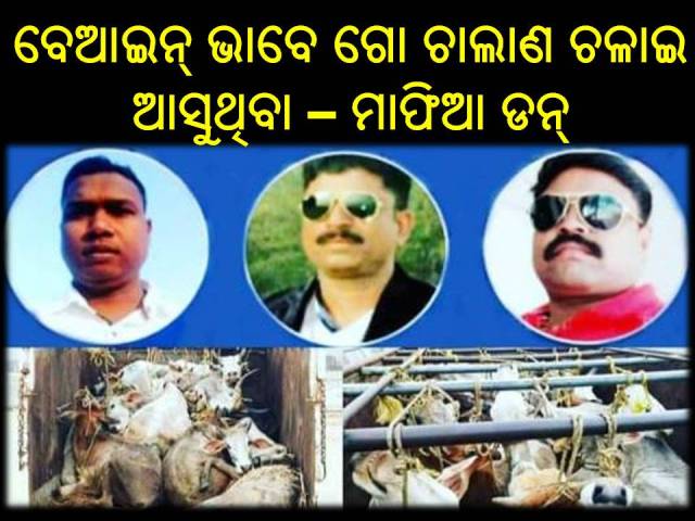 ଓଡ଼ିଶା ତାଜା ନ୍ୟୁଜ୍ /୦୬ ମଇ ଶୁକ୍ରବାର/ ଭୁବନେଶ୍ୱର :- କେବଳ ଝାରପୋଖରିଆ ନୁହେଁ ଜାତୀୟ ରାଜପଥ ପାର୍ଶ୍ବରେ ଥିବା ପ୍ରତ୍ୟେକ ଥାନା ଓ ଫାଣ୍ଡିରେ ଗୋ ତସ୍କର୍ ମାନେ ମହାସୁଲ୍ ଦେଇ ନିୟମିତ ପଶ୍ଚିମବଙ୍ଗ ଓ ବଙ୍ଗଳାଦେଶକୁ ବେଆଇନ୍ ଭାବେ ଗୋ ଚାଲାଣ ଚଳାଇ ଆସୁଥିବା ନେଇ ସେମାନେ ତ ଖୋଲାଖୋଲି ଭାବେ କହନ୍ତି ! ତେବେ ସେଭଳି ଅନ୍ୟ ଥାନା ଓ ଫାଣ୍ଡି ଉପରେ ନଜର ଦେଇ ଏସଂପର୍କରେ ଗୁଇନ୍ଦା ତଥ୍ୟ ସଂଗ୍ରହ କରି ଏଭଳି ବେଆଇନ୍ କାର‌୍ୟ୍ୟକୁ ସହଯୋଗ ଦେଇ ସହଭାଗୀ ହୋଇ ଆସିଥିବା ସେଠାରେ କାର୍ଯ୍ୟରତ ପୋଲିସ୍ ବାବୁ ମାନଙ୍କ ଉପରେ କେବେ କାର୍ଯ୍ୟନୁଷ୍ଠାନ ଗ୍ରହଣ କରିବେ ରାଜ୍ୟ ପୋଲିସ ମହାନିର୍ଦ୍ଦେଶକ ?