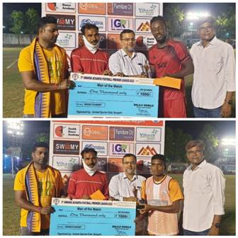 ସେହିଭଳି କରୋନା ସମୟରେ ଚିକିତ୍ସା କ୍ଷେତ୍ରରେ ଉଲ୍ଲେଖନୀୟ ଅବଦାନ ପାଇଁ ଡ. ନିଶାନ୍ତ ଦେବତା ଙ୍କୁ ଆୟୋଜକ ଙ୍କ ତରଫରୁ ମାନପତ୍ର ,ଉପଢୌକନ ଓ ସ୍ମାରକୀ ଦେଇ ସମ୍ବର୍ଦ୍ଧିତ କରାଯାଇଥିଲା । ସେହିଭଳି ଗତକାଲି ବରଗଡ ୱାରୀୟର୍ସ ଓ ବରପାଲି ବାଇସନ ମଧ୍ୟରେ ଅନୁଷ୍ଟିତ ଦ୍ଵିତୀୟ ମ୍ୟାଚ୍ ରେ ବରପାଲି ବାଇସନ ଦଳ ୪- ୧ ଗୋଲରେ ବିଜୟୀ ହୋଇଥିଲା ।ବିଜୟୀ ଦଳ ପକ୍ଷରୁ ୧୦ ନମ୍ବର ଖେଳାଳି ଆଡମିନ ତିର୍କି ୨ ଟି ଗୋଲ, ୧୧ ନମ୍ବର ଖେଳାଳି ବେତାଳ ୧ ଟି ଗୋଲ ଦେଇଥିବା ବେଳେ ,ବରଗଡ ଦଳର ୧୯ ନମ୍ବର ଖେଳାଳି ଭେଙ୍ଗୋ ଗୋଟିଏ ଗୋଲ ଦେଇଥିଲେ ।