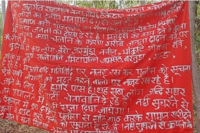 ତେଣୁ ସେମାନେ ସୁଧୁରି ଯାଆନ୍ତୁ ନଚେତ ଦଣ୍ଡିତ ହେବେ ବୋଲି ଚେତାବନୀ ଦେଇଛନ୍ତି ମାଓବାଦୀ ସଂଗଠନ । ମାଓବାଦୀମାନେ ବିଭିନ୍ନ ଗ୍ରାମର କିଛି ଲୋକଙ୍କୁ ପୋଲିସ ଇନଫର୍ମର ବୋଲି ସନ୍ଦେହ କରୁଛନ୍ତି । ସେମାନଙ୍କ ନାମ ଓ ଗ୍ରାମର ନାମ ଲେଖା ହୋଇଛି ଏବଂ ସୁଧୁରି ଯିବା ପାଇଁ ଚେତାବନୀ ଦେଇଛନ୍ତି । ମାଓବାଦୀ ସଂଗଠନ (ବିବିଏମ୍‌) ବରଗଡ଼, ବଲାଙ୍ଗିର ଓ ମହାସମୁନ୍ଦ ସଙ୍ଗଠନ ଏହି ବ୍ୟାନର ଲେଖାଥିବା ପରିଲକ୍ଷିତ ହୋଇଛି ।