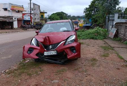ଓଡ଼ିଶା ତାଜା ନ୍ୟୁଜ୍/୭ ଜୁଲାଇ ଗୁରୁବାର/ବୈପାରିଗୁଡା :- କୋରାପୁଟ ଜିଲ୍ଲା ବୈପାରିଗୁଡା ଥାନା ଅନ୍ତର୍ଗତ ରାଚିଂ-ବିଜୟୱାର୍ଡା ଜାତୀୟ ରାଜପଥର ବୈପାରିଗୁଡା ଗ୍ରାମର ବିରଖମ୍ବ ସାହି ଯିବା ରାସ୍ତା ପାଖରେ ଗୁଣ୍ଡିଚା ମନ୍ଦିର ରହିଥିବା ବେଳେ ଗତ କାଲି ରାତ୍ରି ରେ ଏକ କାର ଭାରସାମ୍ୟ ହରାଇ ରଥକୁ ଧକ୍କା ଦେଇ ଦୁର୍ଘଟଣା ଗ୍ରସ୍ତ ହୋଇଛି । ଝିପି ଝିପି ବର୍ଷା ହେଉଥିବା ବେଳେ ଅନ୍ୟ ଏକ ଗାଡି କୁ ରାସ୍ତା ଦେବାକୁ ଯାଇ ରଥ ସହ ଧକ୍କା ହୋଇଥିବା ଚାଳକ ଜଣକ ପ୍ରକାଶ କରିଛନ୍ତି ।