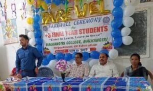 ଓଡ଼ିଶା ତାଜା ନ୍ୟୁଜ(୨୩ ଜୁଲାଇ ଶନିବାର) ମାଲକାନଗିରି :- ମାଲକାନଗିରି ମହାବିଦ୍ୟାଳୟ ଶିକ୍ଷା ବିଭାଗ ସମ୍ମାନ ଶେଷବର୍ଷ ଛାତ୍ରଛାତ୍ରୀଙ୍କୁ ସେହି ବିଭାଗୀୟ ମୁଖ୍ୟ ଶ୍ରୀ ଗୌତମ ନାୟକଙ୍କ ଦ୍ୱାରା ଅନୁଷ୍ଠିତ ହୋଇଥିଲା । ଏହି ସଭାରେ ମାଲକାନଗିରି ମହାବିଦ୍ୟାଳୟର ଅଧ୍ୟକ୍ଷ ଅଶୋକ କୁମାର ଷଡଙ୍ଗୀ ମୁଖ୍ୟ ଅତିଥି ରୂପେ ଯୋଗଦାନ କରି ଛାତ୍ରଛାତ୍ରୀଙ୍କୁ ଉତ୍ତମ ଶିକ୍ଷାଲାଭ କରି ଉଚ୍ଚ ପଦପଦବୀରେ ଅବସ୍ଥାପିତ ହେବା ପାଇଁ ପରାମର୍ଶ ଦେଇଥିଲେ । ମୁଖ୍ୟ ଅତିଥି ବାଣିଜ୍ୟ ବିଭାଗର ମୁଖ୍ୟ ତଥା ରାଜ୍ୟପାଳ ପୁରସ୍କାର ବିଜେତା ଶିକ୍ଷା ବିଭାଗର ଶୃଙ୍ଖଳିତ ଛାତ୍ରଛାତ୍ରୀଙ୍କ ଶୁଭ ମଙ୍ଗଳ କାମନା କରି ମାଲକାନଗିରିର ଆଦର୍ଶ ନାଗରିକ ହୋଇ ଦେଶର ସେବା କରିବା ପାଇଁ ଆହ୍ୱାନ ଦେଇଥିଲେ ।