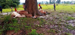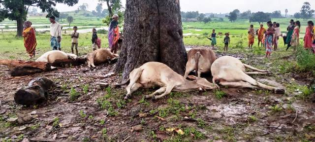 ବଜ୍ରପାତରେ ଗୋଟିଏ ବଳଦ , ଛେଳି ଓ ୫ ଗାଈ ମୃତ