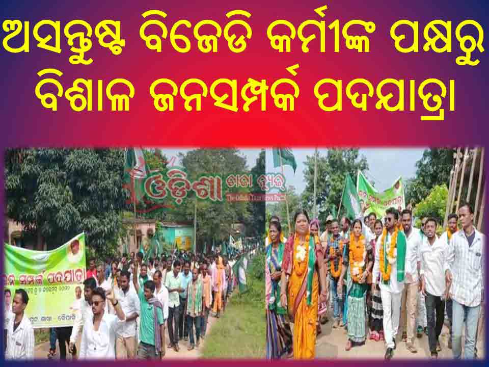 ରାଜ୍ୟ ସରକାରଙ୍କ ବିଭିନ୍ନ ଜନକଲ୍ୟାଣକାରୀ ଯୋଜନା ଓ ସାମୁହିକ ବିକାଶମୂଳକ ଯୋଜନାର ସଫଳ ରୂପାୟନ କରିବା ଏବଂ ଜନସାଧାରଣ ଓ ସମାଜରେ ସବୁଠାରୁ ତଳସ୍ତରରେ ରହିଥିବା ଲୋକମାନେ କିପରି ସୁଫଳ ପାଇପାରିବେ ସେଥିପ୍ରତି ଧ୍ୟାନ ଦେବା ପାଇଁ ଦଳୀୟ ଅସନ୍ତୁଷ୍ଟ କର୍ମୀ ନିର୍ବାଚିତ ପ୍ରତିନିଥି ଓ କର୍ମୀଙ୍କୁ ସଚେତନ କରାଇଥିଲେ । ଏହି ଜନସମ୍ପର୍କ ପଦଯାତ୍ରାରେ ଅସନ୍ତୁଷ୍ଟ କର୍ମୀଙ୍କ ସହିତ କିଛି ସରପଂଚ , ସମିତିସଭ୍ୟ, ୱାର୍ଡମେମ୍ବର ମାନେ ଉପସ୍ଥିତ ରହିଥିଲେ । ଅସନ୍ତୁଷ୍ଟ କିଛି କର୍ମା ଦଶମନ୍ତପୁର ପଂଚାୟତର ହାଟପଦା ଠାରେ ଦଶମନ୍ତପୁର, ମାଝୀଗୁଡା ଓ କୋଲାର ପଂଚାୟତର ବିଜେଡି ଦଳର କର୍ମୀ ମାନଙ୍କୁ ନେଇ ଏକ ବିଶାଳ ଜନସମ୍ପର୍କ ପଦଯାତ୍ରା କରିଥିବା ବେଳେ ଏହାକୁ ଚାଲେଞ୍ଜ ଦେଇ ସନ୍ତୁଷ୍ଟ ଗୋଷ୍ଠୀ କଣ ପଦକ୍ଷେପ ନେଉଛନ୍ତି ତାହା ଏବେ ଦେଖିବାକୁ ବାକି ରହିଛି ।