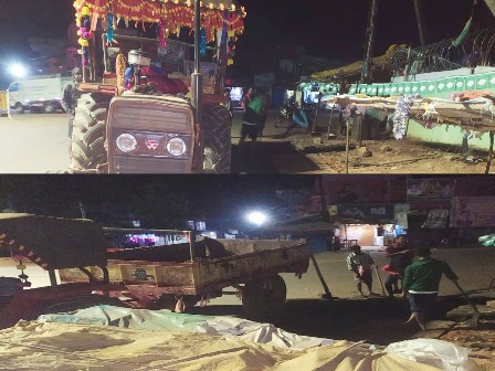 କୋରୁକୋଣ୍ଡା ଠାରେ ଚାଷୀଙ୍କ ଧାନ ବସ୍ତା ରଖି ରାସ୍ତାରୋକ ।