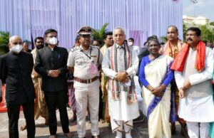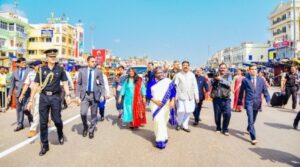 ୧୦ ନଭେମ୍ବର ଗୁରୁବାର ( ଓଡ଼ିଶା ତାଜା ନ୍ୟୁଜ ) ପୁରୀ :- ମାନ୍ୟବର ରାଷ୍ଟ୍ରପତି ଶ୍ରୀମତୀ ଦ୍ରୌପଦୀ ମୁର୍ମୁ ଆଜି ଶ୍ରୀଜୀଉ ମାନଙ୍କୁ ଶ୍ରୀମନ୍ଦିର ରେ ଦର୍ଶନ କରିଛନ୍ତି । ପୂର୍ବାହ୍ନ ୧୧.୪୦ ମିନିଟରେ ତାଳବଣିଆ ହେଲିପ୍ୟାଡରେ ପହଞ୍ଚିବା ପରେ ରାଷ୍ଟ୍ରପତି ଙ୍କୁ ରାଜ୍ୟପାଳ ପ୍ରଫେସର ଶ୍ରୀ ଗଣେଶୀ ଲାଲ, କେନ୍ଦ୍ର ମନ୍ତ୍ରୀ ଶ୍ରୀ ଧର୍ମେନ୍ଦ୍ର ପ୍ରଧାନ, ସୂଚନା ଓ ଲୋକ ସମ୍ପର୍କ ଓ ପଞ୍ଚାୟତରାଜ ମନ୍ତ୍ରୀ ଶ୍ରୀ ପ୍ରଦୀପ କୁମାର ଅମାତ, ଜିଲ୍ଲାପାଳ ଶ୍ରୀ ସମର୍ଥ ବର୍ମା ପ୍ରମୁଖ ସ୍ୱାଗତ କରିଥିଲେ।ପରେ ପରେ ରାଷ୍ଟ୍ରପତି ଶ୍ରୀମନ୍ଦିର ଅଭିମୁଖେ ଆସିଥିଲେ।ତେବେ ବଳଗଣ୍ଡି ଛକଠାରେ ନିଜ ଗାଡି ରୁ ଓହ୍ଲାଇ ରାଷ୍ଟ୍ରପତି ଚାଲି ଚାଲି ସିଂହଦ୍ୱାର ନିକଟରେ ପହଞ୍ଚି ପ୍ରଥମେ ମୁଣ୍ଡିଆ ମାରି ପରେ ପାଦଧୋଇ ଅରୁଣ ସ୍ତମ୍ଭ କୁ ସ୍ପର୍ଶ ପ୍ରଣାମ କରି ବାଇଶି ପାହାଚ ଦେଇ ମହାପ୍ରଭୁ ଙ୍କୁ ଦର୍ଶନ କରିଥିଲେ। ସିଂହଦ୍ଵାର ପାଖରେ ଗଜପତି ମହାରାଜା ରାଷ୍ଟ୍ରପତି ଙ୍କୁ ସ୍ୱାଗତ କରିଥିଲେ। ରାଷ୍ଟ୍ରପତି ଙ୍କ କୌଳିକ ପଣ୍ଡା ପୂଜାର୍ଚନା ରେ ସହଯୋଗ କରିଥିଲେ।ଦର୍ଶନ ରୁ ଫେରିବା ପରେ ଶ୍ରୀମନ୍ଦିର ପ୍ରଶାସନ ଓ ଛତିଶା ନିଯୋଗ ପକ୍ଷରୁ ରାଷ୍ଟ୍ରପତି ଙ୍କୁ ଶ୍ରୀଜୀଉଙ୍କ ଫଟୋ ଚିତ୍ର ପ୍ରଦାନ କରାଯାଇଥିଲା।ପରେ ସିଂହଦ୍ୱାର ଠାରେ ଥିବା ଉତ୍କଳମଣି ପଣ୍ଡିତ ଗୋପବନ୍ଧୁଙ୍କ ପ୍ରତିମୂର୍ତ୍ତି ରେ ରାଷ୍ଟ୍ରପତି, ରାଜ୍ୟପାଳ, କେନ୍ଦ୍ର ମନ୍ତ୍ରୀ ଓ ରାଜ୍ୟ ପଞ୍ଚାୟତିରାଜ ମନ୍ତ୍ରୀ ମାଲ୍ୟାର୍ପଣ କରିଥିଲେ। ଏହା ପରେ ପୁରୀ ରାଜଭବନ କୁ ରାଷ୍ଟ୍ରପତି ଗସ୍ତ କରିବା ସହ ସେଠାରେ ଗଜପତି ମହାରାଜା, ମହାରାଣୀ ଓ ରାଷ୍ଟ୍ରପତି ଙ୍କ କନ୍ୟା ଇତିଶ୍ରୀ ମୁର୍ମୁ ଙ୍କ ସହ ମହାପ୍ରସାଦ ସେବନ କରିଥିଲେ। ରାଜଭବନ ରେ ରାଷ୍ଟ୍ରପତି ଙ୍କୁ ପୁରୀ ବିଧାୟକ ଶ୍ରୀ ଜୟନ୍ତ ଷଡ଼ଙ୍ଗୀ, ବ୍ରହ୍ମଗିରି ବିଧାୟକ ଶ୍ରୀ ଲଳିତେନ୍ଦୁ ବିଦ୍ୟାଧର ମହାପାତ୍ର,ବିଭିନ୍ନ ଅନୁଷ୍ଠାନ ଓ ସଂଗଠନର କର୍ମକର୍ତ୍ତା ଏବଂ ବ୍ୟକ୍ତି ବିଶେଷ ସାକ୍ଷାତ ଆଲୋଚନା କରି ଶୁଭେଚ୍ଛା ଜଣାଇଥିଲେ। ଅପରାହ୍ନ ଘ ୩.୩୦ ମି ସମୟରେ ରାଷ୍ଟ୍ରପତି ରାଜଭବନ ପରିତ୍ୟାଗ କରି ତାଳବଣିଆ ରୁ ବିମାନ ଯୋଗେ ଭୁବନେଶ୍ୱର ଅଭିମୁଖେ ଯାତ୍ରା କରିଥିଲେ । ରାଷ୍ଟ୍ରପତି ଙ୍କୁ ସ୍ୱାଗତ କରାଯାଇ ସହର ର ବିଭିନ୍ନ ସ୍ଥାନରେ ସ୍ୱାଗତ ହୋଡିଂ ମାନ ଲଗାଯିବା ସହ ବଡଦାଣ୍ଡ ଓ ସିଂହଦ୍ଵାରର ତିନୋଟି ସ୍ଥାନରେ ପାରମ୍ପରିକ ଓଡିଶୀ, ଗୋଟିପୁଅ ଓ ସାହି ଯାତ ସାସ୍କୃତିକ କାର୍ଯ୍ୟକ୍ରମ ପରିଦର୍ଶନ କରାଯାଇଥିଲା । ଶ୍ରୀମନ୍ଦିର ପରିଚାଳନା କମିଟିର ସଦସ୍ୟ, ସେବାୟତ ମାନେ ରାଷ୍ଟ୍ରପତି ଙ୍କୁ ସ୍ୱାଗତ କରିଥିଲେ। ଏହି କାର୍ଯ୍ୟକ୍ରମ ରେ ଶ୍ରୀମନ୍ଦିର ମୁଖ୍ୟ ପ୍ରଶାସକ ଶ୍ରୀ ବୀର ବିକ୍ରମ ଯାଦବ ଅତିରିକ୍ତ ଡିଜି ଶ୍ରୀ ରାଧାକୃଷ୍ଣ ଶର୍ମା, ଆଇ ଜି ଶ୍ରୀ ନରସିଂହ ଭୋଳ,କେନ୍ଦ୍ରାଞ୍ଚଳ ଆରଡିସି ଶ୍ରୀ ସୁରେଶ ଚନ୍ଦ୍ର ଦଳାଇ, ଜିଲ୍ଲାପାଳ ଶ୍ରୀ ସମର୍ଥ ବର୍ମା, ଏସ ପି ଡ଼ଃ କନୱର ବିଶାଲ ସିଂ,ଅତିରିକ୍ତ ଜିଲ୍ଲାପାଳ ପ୍ରଶାସନ ଶ୍ରୀ ପ୍ରଦୀପ କୁମାର ସାହୁ, ଅତିରିକ୍ତ ଜିଲ୍ଲାପାଳ ରାଜସ୍ବ ଶ୍ରୀ କୈଳାସ ଚନ୍ଦ୍ର ନାୟକ, ଅତିରିକ୍ତ ଜିଲ୍ଲାପାଳ ପ୍ରୋଟୋକଲ ଶ୍ରୀ ଦିଲ୍ଲୀପ କୁମାର ମହାପାତ୍ର, ଅତିରିକ୍ତ ଏସ ପି ଶ୍ରୀ ମିହିର ପ୍ରସାଦ ପଣ୍ଡା, ଜିଲ୍ଲା ପରିଷଦ ମୁଖ୍ୟ ଉନ୍ନୟନ