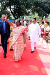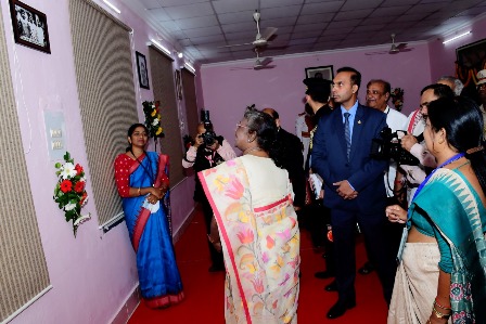 ୧୧ ନଭେମ୍ବର ଶୁକ୍ରବାର ( ଓଡ଼ିଶା ତାଜାନ୍ୟୁଜ)ଭୁବନେଶ୍ୱର :- ପଚାଶ ବର୍ଷ ତଳେ ପାଠ ପଢ଼ୁଥିବା ସମୟର ଅଲିଭା ସଂସ୍କୃତିକୁ ଉଜ୍ଜୀବିତ କରିଛନ୍ତି, ମହାମହିମ ରାଷ୍ଟ୍ରପତି ଶ୍ରୀମତୀ ଦ୍ରୌପଦୀ ମୁର୍ମୁ । ଆଜି ପୂର୍ବାହ୍ନରେ ରାଜଧାନୀର ୟୁନିଟ୍‌-୨ ସ୍ଥିତ କ୍ୟାପିଟାଲ୍‌ ବାଳିକା ଉଚ୍ଚ ବିଦ୍ୟାଳୟ ପରିଦର୍ଶନ କରି ରାଷ୍ଟ୍ରପତି ଶ୍ରୀମତୀ ମୁର୍ମୁ ତାଙ୍କ ପାଠପଢ଼ା ବେଳର ସଂସ୍କୃତିକୁ ଉଜାଗର କରିଛନ୍ତି ।ରାଷ୍ଟ୍ରପତି ଶ୍ରୀମତୀ ମୁର୍ମୁ ପୂର୍ବାହ୍ନ ୯ଟା ୩୦ ମିନିଟ୍‌ ସମୟରେ ସରକାରୀ ବାଳିକା ଉଚ୍ଚ ବିଦ୍ୟାଳୟ, ୟୁନିଟ୍‌- ୨ ପରିସରରେ ପହଞ୍ଚିଥିଲେ । ତାଙ୍କ ସହ ମାନ୍ୟବର ରାଜ୍ୟପାଳ ପ୍ରଫେସର ଗଣେଶୀ ଲାଲ, କେନ୍ଦ୍ର ଶିକ୍ଷା ମନ୍ତ୍ରୀ ଶ୍ରୀ ଧର୍ମେନ୍ଦ୍ର ପ୍ରଧାନ ମଧ୍ୟ ଏହି ବିଦ୍ୟାଳୟ ଗସ୍ତରେ ଯାଇଥିଲେ । ରାଜ୍ୟ ବିଦ୍ୟାଳୟ ଓ ଗଣଶିକ୍ଷା ମନ୍ତ୍ରୀ ଶ୍ରୀ ସମୀର ରଞ୍ଜନ ଦାଶ, ରାଜ୍ୟ ବିଜ୍ଞାନ ଓ କାରିଗରୀ, ସାଧାରଣ ଉଦ୍ୟୋଗ, ସାମାଜିକ ସୁରକ୍ଷା ଓ ଭିନ୍ନକ୍ଷମ ସଶକ୍ତିକରଣ ମନ୍ତ୍ରୀ ଶ୍ରୀ ଅଶୋକ ଚନ୍ଦ୍ର ପଣ୍ଡା, ଭୁବନେଶ୍ୱର ସାଂସଦ ଶ୍ରୀମତୀ ଅପରାଜିତା ଷଡଙ୍ଗୀ, ବିଦ୍ୟାଳୟ ଓ ଗଣଶିକ୍ଷା ବିଭାଗର କମିଶନର ତଥା ଶାସନ ସଚିବ ଶ୍ରୀମତୀ ଅଶ୍ୱଥୀ ଏସ୍‌, ରାଜ୍ୟ ପ୍ରକଳ୍ପ (ଓସେପା) ନିର୍ଦ୍ଦେଶକ ଶ୍ରୀ ଅନୁପମ ସାହା, ମାଧ୍ୟମିକ ଶିକ୍ଷା ନିର୍ଦ୍ଦେଶକ ଶ୍ରୀ ସୁଶାନ୍ତ ମହାପାତ୍ର, ପୋଲିସ କମିଶନର ଶ୍ରୀ ସୌମେନ୍ଦ୍ର ପ୍ରିୟଦର୍ଶୀ ପ୍ରମୁଖ ମାନ୍ୟବର ରାଷ୍ଟ୍ରପତି ଶ୍ରୀମତୀ ମୁର୍ମୁଙ୍କୁ ସ୍ୱାଗତ ଜଣାଇଥିଲେ । ବିଦ୍ୟାଳୟର ଛାତ୍ରୀମାନଙ୍କ ବ୍ୟାଣ୍ଡ ସ୍ୱାଗତ ଧ୍ୱନି ପରିବେଷଣ କରିଥିଲା । ‘ମୋ ସ୍କୁଲ’ ବାଲୁକା କଳାକୁ ରାଷ୍ଟ୍ରପତି ଉନ୍ମୋଚନ କରିଥିଲେ । ପିଲାମାନଙ୍କ ଦ୍ୱାରା ‘ବନ୍ଦେ ଉତ୍କଳ ଜନନୀ’  ସଂଗୀତ ଗାନ କରାଯାଇଥିଲା । ଛାତ୍ରୀମାନେ ଜନଜାତି ନୃତ୍ୟ ପରିବେଷଣ କରିଥିଲେ । ରାଷ୍ଟ୍ରପତି ଶ୍ରୀମତୀ ଦ୍ରୌପଦୀ ମୁର୍ମୁ ଜନଜାତି ନୃତ୍ୟ ପରିବେଷଣ କରିଥିବା ବିଦ୍ୟାଳୟର ଛାତ୍ରୀମାନଙ୍କ ସହ ଫଟୋ ଉଠାଇଥିଲେ । ବିଦ୍ୟାଳୟ ଓ ଗଣଶିକ୍ଷା ମନ୍ତ୍ରୀ ଶ୍ରୀ ଦାଶ ମାନ୍ୟବର ରାଷ୍ଟ୍ରପତିଙ୍କୁ ତାଙ୍କ ପଢ଼ୁଥିବା ବେଳର ନାମଲେଖା ରେଜିଷ୍ଟ୍ରର ଉପହାର ଦେଇଥିଲେ । ରାଷ୍ଟ୍ରପତି ଶ୍ରୀମତୀ ମୁର୍ମୁ ତାଙ୍କ ସହପାଠିନୀମାନଙ୍କ ସହ ଫଟୋ ଉଠାଇଥିଲେ । ସନ୍ନିକଟ କୁନ୍ତଳା କୁମାରୀ ସାବତ ଜନଜାତି ଛାତ୍ରୀନିବାସକୁ ମାନ୍ୟବର ରାଷ୍ଟ୍ରପତି ଶ୍ରୀମତୀ ମୁର୍ମୁ ଚାଲି ଚାଲି ଯାଇ ପରିଦର୍ଶନ କରିଥିଲେ । ହଷ୍ଟେଲର ଅନ୍ତେବାସିନୀମାନେ ସ୍ୱାଗତ ସଂଗୀତ ଗାନ କରିଥିଲେ । ହଷ୍ଟେଲର ପରିଦର୍ଶକ ପୁସ୍ତିକାରେ ସେ ଦସ୍ତଖତ ଓ ମନ୍ତବ୍ୟ ପ୍ରଦାନ କରିଥିଲେ । ହଷ୍ଟେଲର ଅନ୍ତେବାସିନୀ ଛାତ୍ରୀମାନେ ରାଷ୍ଟ୍ରପତି ଶ୍ରୀମତୀ ମୁର୍ମୁଙ୍କୁ ତାଙ୍କ ପିଲାବେଳର ଫଟୋ ଓ ସେମାନଙ୍କ ଦ୍ୱାରା ପ୍ରସ୍ତୁତ ବର୍ତ୍ତମାନର ପ୍ରତିଛବି ଉପହାର ଦେଇଥିଲେ ।ଏହି ଛାତ୍ରୀନିବାସର ତୁଳସୀ ମୁଣ୍ଡା ବ୍ଲକ୍‌ର ୬ ନମ୍ବର ପ୍ରକୋଷ୍ଠରେ ରାଷ୍ଟ୍ରପତି ଶ୍ରୀମତୀ ମୁର୍ମୁ ରହି ପାଠ ପଢ଼ୁଥିଲେ ା ସେହି ପ୍ରକୋଷ୍ଠରେ ତାଙ୍କ ହଷ୍ଟେଲ ବେଳର ଖଟରେ ରାଷ୍ଟ୍ରପତି କିଛି ସମୟ ବସିଥିଲେ । ହଷ୍ଟେଲ ପରିସରରେ ରାଷ୍ଟ୍ରପତି ଶ୍ରୀମତୀ ମୁର୍ମୁ ବଉଳ ଗଛର ଚାରା ରୋପଣ କରିଥିଲେ । ରାଷ୍ଟ୍ରପତି ଶ୍ରୀମତୀ ମୁର୍ମୁ କାର୍ଯ୍ୟକ୍ରମ ସମାପ୍ତ ହେବା ପରେ ରାଜ୍ୟ