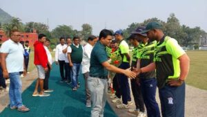 ତା..03.12.2022 (ଓଡ଼ିଶା ତାଜା ନ୍ୟୁଜ ) ନୟାଗଡ଼ :- ନୟାଗଡ଼ ଜିଲ୍ଲା କ୍ରିକେଟ୍ ଆସୋସିଏସନ୍ ଆନୁକୂଲ୍ୟରେ ଓ ନୟାଗଡ଼ ବିଧାୟକ ଡ଼ ଅରୁଣ କୁମାର ସାହୁଙ୍କ ପରାମର୍ଶକ୍ରମେ ସର୍ବଭାରତୀୟ କ୍ରିକେଟ୍ ଟୁର୍ଣ୍ଣାମେଣ୍ଟ ଟି-୨୦ ନୟାଗଡ଼ କପ୍-୨୦୨୨ ନୟାଗଡ଼ ସ୍ୱୟଂ ଶାସିତ ମହାବିଦ୍ୟାଳୟର ଖେଳ ପଡିଆରେ ଆଜି ତୃତୀୟ ଦିବସ ମ୍ୟାଚ୍ ଅନୁଷ୍ଠିତ ହୋଇଯାଇଛି । ତୃତୀୟ ଦିବସ ମ୍ୟାଚରେ ମୁହାଁମୁହିଁ ହୋଇଥିଲେ ରେଲୱେ ଓଡ଼ିଶା ବନାମ କଟକ ୟୁନିଅନ୍ ସ୍ପୋର୍ଟିଂ । ଆଜିର ମ୍ୟାଚକୁ ନୟାଗଡ଼ ତହସିଲଦାର ଭିକାରୀ ଚରଣ ସାହୁ ମୁଖ୍ୟଅତିଥି ଭାବେ ଯୋଗ ଖେଳାଳୀମାନଙ୍କ ସହ କରମର୍ଦ୍ଦନ କରି ଉତ୍ସାହିତ କରିଥିଲେ ।