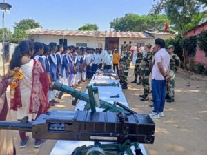 ୨୨ ଡିସେମ୍ବର ଗୁରୁବାର ( ଓଡ଼ିଶା ତାଜା ନ୍ୟୁଜ ) ବୈପାରିଗୁଡା :- ବୈପାରିଗୁଡାରେ ନିୟୋଜିତ ଥିବା ସୀମା ସୁରକ୍ଷା ବାହାନୀ( ବିଏସ୍ଏଫ୍ )୧୫୧ ବାଟାଲିୟନ ପକ୍ଷରୁ ବୈପାରିଗୁଡା ବ୍ଲକର ବିଭିନ୍ନ ବିଦ୍ୟାଳୟ ଠାରେ ବୈପାରିଗୁଡା,ରାମଗିରି,ଦଣ୍ଡାବାଡି,ମନ୍ତ୍ରୀଆମ୍ବ ଠାରେ ଥିବା ବିଏସ୍ଏଫ୍ କ୍ୟାମ୍ପ ତରଫରୁ ଛାତ୍ରଛାତ୍ରୀ ମାନଙ୍କୁ ନେଇ ଏକ ସଚେତନତା କାର୍ଯ୍ୟକ୍ରମ କରିବା ସହ ଦେଶର ସୁରକ୍ଷା ନେଇ ବ୍ୟବହୃତ ହେଉଥିବା ବିଭିନ୍ନ ପ୍ରକାର ଅସ୍ତ୍ରଶସ୍ତ୍ର ପ୍ରଦର୍ଶନୀ କରିଥିବାର ଜଣାପଡିଛି । ବୈପାରିଗୁଡା ୧୫୧ ବାଟାଲିୟନ ବିଏସ୍ଏଫ୍ ମୁଖ୍ୟ କମାଣ୍ଡେଂଟ ଅଜୟ କୁମାରଙ୍କ ନିର୍ଦ୍ଦେଶକ୍ରମେ ଏହି କାର୍ଯ୍ୟକ୍ରମ ଅନୁଷ୍ଠିତ ହୋଇଥିବାର କହିଛନ୍ତି ବିଏସ୍ଏଫ୍ ଯବାନ ।ଅସ୍ତ୍ରଶସ୍ତ୍ର ସହ ଦେଶର ସୁରକ୍ଷା ପାଇଁ ବିଏସ୍ଏଫ୍ ଯବାନ ବ୍ୟବହାର କରୁଥିବା ସମସ୍ତ ପ୍ରକାର ଯନ୍ତ୍ରପାତି ମଧ୍ୟ ପ୍ରଦର୍ଶନ କରାଯାଇଥିଲା ।