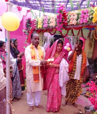 ୪ ଫେବୃଆରୀ,ଶନିବାର ୨୦୨୩ (ଓଡ଼ିଶା ତାଜାନ୍ୟୁଜ ) ପାଟଣାଗଡ଼ :- ମାଘମେଳା ଉପଲକ୍ଷେ ଶ୍ରୀମଦ୍ ଭାଗବତ ପରାୟଣ ୬ଷ୍ଠ ଦିନ ରେ ଆଜି ମହାସମାରୋହରେ ରୁକ୍ମିଣୀ ବିବାହ ସମ୍ପନ୍ନ କଲେ ଯୁବ ସାମ୍ବାଦିକ ଘନ ଭୁଏ ଓ ତାଙ୍କ ଧର୍ମ ପତ୍ନୀ ମାଧୁରୀ ଭୁଏ ପାଟଣାଗଡ ପାଟଣାଗଡ଼ ବ୍ଲକ ଅନ୍ତର୍ଗତ ମୁଣ୍ଡୋମହୁଲ ଗାଁରେ ମାଘ ମେଳା ଉପଲକ୍ଷେ ଶ୍ରୀମଦ ଭାଗବତ ପରାୟଣ ଅନୁଷ୍ଠିତ ହୋଇଯାଇଛି । ଏହି ମେଳା ଟି ପ୍ରଦୀପ ସାହୁ ଙ୍କ ସଭାପତିତ୍ବରେ ରେ ଅନୁଷ୍ଠିତ ହୋଇଯାଇଛି । ଏହି ମେଳାରେ ହଜାର ହଜାର ସଂଖ୍ଯାରେ ଶ୍ରଦ୍ଧାଲୁ ମାନଙ୍କର ସମାଗମ ହୋଇଥିବା । ପ୍ରତ୍ୟେକ ରାତ୍ରି ରେ ମନୋରଞ୍ଜନ କାର୍ଯ୍ୟକ୍ରମ ମୀନାବଜାର ଜଳନ୍ଧର ବଧ ଅନୁଷ୍ଠିତ ହୋଇଯାଇଛି ପ୍ରତ୍ୟେକ ରାତ୍ରି ଜନପ୍ରତିନିଧି ଙ୍କ ସହ ପ୍ରଶାସନିକ ଅଧିକାରୀ ମାନେ ଅତିଥି ଭାବେ ନିମନ୍ତ୍ରଣ କରାଯାଇ ଗାଁ ତଥା ଅଞ୍ଚଳ ର ବିଭିନ୍ନ ସମସ୍ୟା ର ସମାଧାନ ଉପରେ ଆଲୋକପାତ କରିବା ସହ ଏହି ମେଳା କୁ ଆହୁରି କେମିତି ଆଗକୁ ସରସ ସୁନ୍ଦର କରା ଯିବ ତାହା ମଧ୍ୟ ଅତିଥି ମାନେ ମତ ବ୍ୟକ୍ତ କରିଥିଲେ । ଆୟୋଜିତ ମେଳା ରେ ରବି ଚନ୍ଦ୍ର ଧରୁଆ ସମ୍ପାଦକ ଥିବାବେଳେ ପୂଜା କର୍ତା କୀର୍ତ୍ତି ଚନ୍ଦ୍ର ସାହୁ ଏବଂ ଧର୍ମ ପତ୍ନୀ କୁନି ସାହୁ ପୂଜା କର୍ତ୍ତା ଭାବେ କାର୍ଯ୍ୟ ନିର୍ବାହ କରିଥିଲେ । ପୂଜକ ନୁରୋତ୍ତମ୍ ତ୍ରିପାଠୀ ଏବଂ ବ୍ୟାସ ଭାବେ -ବନମାଳୀ ମିଶ୍ର ଯୋଗଦେଇ ସୁମଧୁର କଣ୍ଠସ୍ଵରେ ଭାଗବତ ପରାୟଣ କରି ସମସ୍ତ ଶ୍ରଦ୍ଧାଳୁମାନଙ୍କ ମନକୁ ମନ୍ତ୍ରମୁଗ୍ଧ କରିଥିଲେ । ମୁଣ୍ଡୋମହୁଲ ଗ୍ରାମର ସମସ୍ତେ ସହ ଯୋଗ କରିଥିଲେ । ଆଜି ରୀତି ନୀତି ଭାବରେ ରୁକ୍ମୁଣୀ ବିବାହ ଅନୁଷ୍ଠିତ ହୋଇଥିଲା । ଅନୁଷ୍ଠିତ ବିବାହ ର କନ୍ୟା ର ପିତା ଘନ ଭୁଏ ଓ ମାତା ମାଧୁରୀ ଭୁଏ କନ୍ୟା ସମର୍ପଣ କରି ପାରମ୍ପରିକ ଭାବେ କାର୍ଯ୍ୟ ସମ୍ପନ୍ନ କରିଥିଲେ । ସମସ୍ତ ଶ୍ରଦ୍ଧାଳୁମାନଙ୍କ ପାଇଁ ଅନ୍ନପ୍ରସାଦ ଭୋଗ ବ୍ୟବସ୍ଥା କରାଯାଇଥିଲା ।